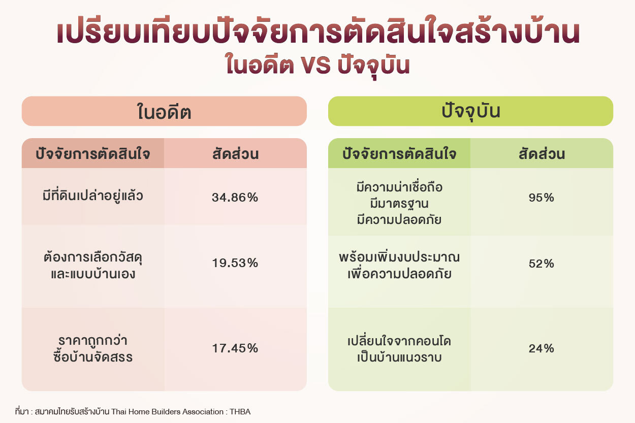 ตารางที่ 1: การเปรียบเทียบปัจจัยการตัดสินใจสร้างบ้าน (อดีต vs ปัจจุบัน)