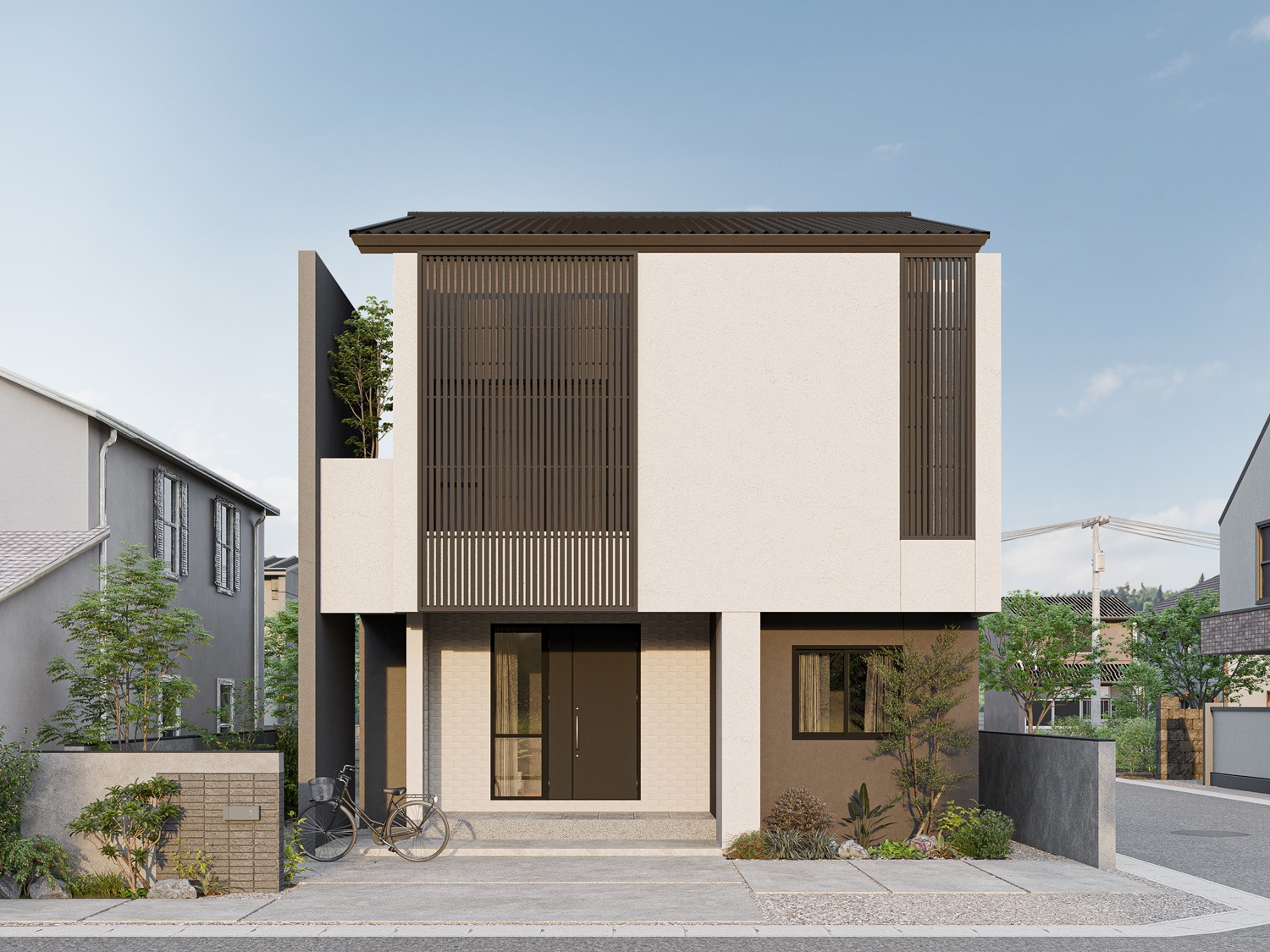 Single-story homes inspired by Japanese house styles, featuring distinctive compact forms with surrounding green spaces. Designed with openings to experience outdoor atmospheres, while interiors feature complete functional design.